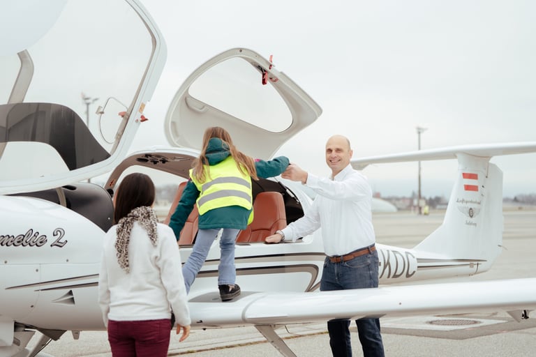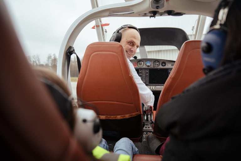 Unsere ehrenamtlichen Piloten ermöglichen Kindern und ihren Familien unbeschwerte Momente in der Luft, voller Freude, Leichtigkeit und Abenteuer.